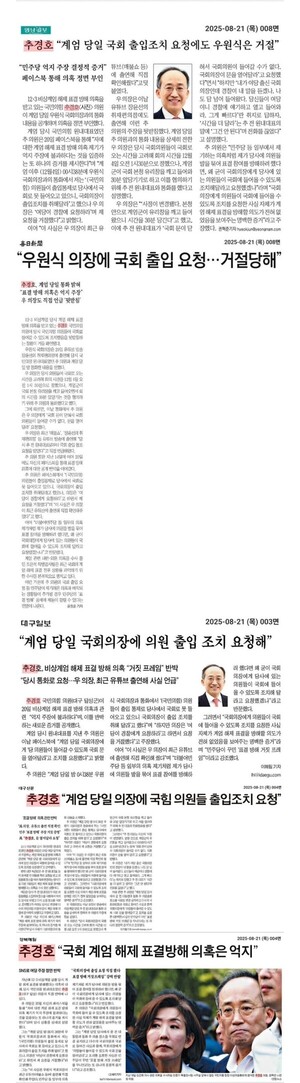 [굿모닝충청 조하준 기자] 대구·경북 지역 언론사들이 지난 12.3 내란 사태 당시 윤석열 내란 세력과 내통한 것으로 강하게 의심돼 조은석 내란 특검팀 수사 대상에 오른 국민의힘 추경호 전 원내대표를 옹호하는 듯한 기사를 대거 실어 논란을 일으키고 있다. 문제는 이같은 대구·경북 지역 언론사들의 보도가 추 의원의 일방적 주장을 그대로 앵무새처럼 읊은 것에 불과하다는 것.지난 20일 추경호 의원은 자신의 페이스북에