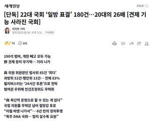 [굿모닝충청 조하준 기자] 지난 9월 30일 세계일보가 란 제목의 단독 보도 기사를 보도해 논란을 일으키고 있다. 해당 기사는 국민의힘이 윤석열 정부 시절부터 줄곧 더불어민주당을 향해 반복적으로 내뱉었던 프레임이자 윤석열 전 대통령이 12.3 내란 사태를 일으킨 명분 중 하나로 작용한 소위 '입법독재' 프레임과 맞닿아 있다.해당 기사를 보면 "민주당이 지배하는 22대 국회에서 여야 합의 없이 일방적으로 표결을 강행한 사례가 개원 15개월 만에 180건에