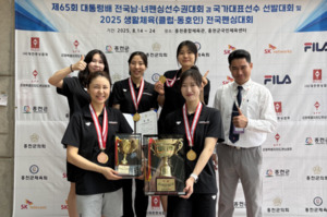 [굿모닝충청 노준희 기자] 충남 계룡시 펜싱팀(감독 김은수)이 ‘제65회 대통령배 전국 남·녀 펜싱선수권대회 겸 국가대표 선수 선발대회’에서 지난해에 이어 2년 연속 단체전 우승을 차지했다고 21일 밝혔다.지난 14일부터 강원도 홍천종합체육관에서 개최된 이번 대회에서 최인정·이지영·김나경·임태희 선수로 구성된 에페 단체팀은 8강전에서 중경고등학교를 45대 31로 제압했다. 이어 준결승에서 울산시청을 39대 33으로 꺾고 결승에 진출했다.결승전에서는 강팀으로 꼽히는 부산시청을 만나 치열한 접전 끝에 45대 40으로 승리를 거두며 값진