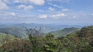 [굿모닝충청 신성재 기자] 추석 연휴, 용인에서 대전으로 복귀한 뒤 곧장 동료들과 발길을 민주지산(岷周之山·1242m)으로 옮겼다. 충북 영동과 전북 무주, 경북 김천이 맞닿은 이 산은 백두대간의 줄기 위에 우뚝 서 있으며, 산림청·블랙야크가 선정한 100대 명산에도 이름을 올린 명산이다.이날 산행은 민주지산자연휴양림 주차장에서 출발해 임도와 능선 삼거리를 지나 정상으로 향하는 원점회귀 코스였다. 총 8.1㎞, 3~4시간 소요되는 대표적인 코스로 초입은 완만했지만 정상 직전에서는 숨이 가빠올 만큼 경사가 가팔라졌다. 연휴라 가족 단