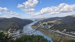 [굿모닝충청 신성재 기자] 일요일 아침, 일행 다섯 명과 공주 청벽산(靑壁山·277m)에 올랐다. 금강을 내려다보는 이 산은 높지 않지만, 풍광은 남다르다. 산세가 갑자기 강가로 가라앉으며 빚어낸 절벽과 물길이 한 화면에 담기는 곳, 그 이름처럼 푸른 벽(靑壁)이 강변을 따라 병풍처럼 서 있다. 공주의 비경은 과장이 아니었다.청벽가든 인근에서 산길이 시작됐다. 초입은 조용했고, 가을 볕이 나뭇잎 위에 내려앉아 술렁이는 빛을 만들었다. 완만한 오르막이 이어지다, 어느 순간 시야가 트였다. 창벽산 전망대. 굽이친 금강이 눈 아래 펼쳐졌