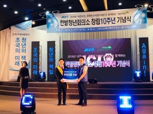 [굿모닝충청 이종훈 기자] 한밭청년회의소(회장 박조영)는 5일 오후 6시30분 오페라웨딩홀에서 창립 10주년을 기념해 사회복지법인 누리봄(대표이사 김윤관) 산하 장애인주간보호센터 헬로에 후원금품을 전달했다.기념식에는 대전지구청년회의소 박태성 지구회장과 장애인주간보호센터 헬로 이민훈 원장을 비롯하여 역대 회장과 한밭청년소의소 회원, 시민 등이 자리를 함께 했다.이날 전달된 후원금품은 청년회의소 회원들과 시민들이 십시일반 모금에 동참해 만들어낸 지원금으로 헬로를 이용하는 장애인들과 지역사회나눔사업비로 사용될 예정이다.전달식에 참여한 박