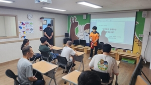 [굿모닝충청 이종훈 시민기자] 아산소방서(서장 구동철) 소속 전흥주 소방장과 김예준 소방교는 28일, 대전시 서구 도마동에 소재한 사회복지법인 누리봄(이사장 김윤관) 산하시설 장애인주간보호센터 헬로를 찾아 발달장애인과 사회복지사를 대상으로 소방안전교육을 진행했다.사회복지시설의 일반적 소방안전교육은 소방관청에 직접 신청하고 교육장소를 방문해 체험이 이루어진다. 그러나 이번에 진행된 소방안전교육은 신청에 의한 소방안전교육이 아닌 근무 이후 자원봉사의 개념으로 진행된 소방안전교육이었다. 교육을 담당한 김예준 소방교는 평소 장애인복지시설을