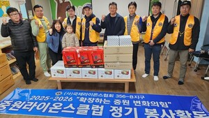 [굿모닝충청 이종훈 ] 22일 낮 12시경, 대전시 서구 도마동 장애인주간보호센터 헬로(원장 이민훈)에서 중원라이온스클럽(회장 박명수, 1부회장 최성필, 2부회장 김태규, 3부회장 김치형)의 정기 봉사활동과 후원품 전달식이 진행됐다.중원라이온스클럽은 회원들의 회비를 모아 몇 년간 후원을 지속해 왔다.전달식에서 박명수 회장은 "누군가를 후원하는 것은 보여주기식 단발성이 아닌 꾸준한 마음을 가지고 있어야 가능하다"며 "한번 맺은 인연을 소홀히 하지 않고 지역사회의 책임을 다할 수 있게 성심성의껏 후원에 임하는 중원라이온스 회원분들게 감