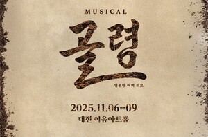 [굿모닝충청 조강숙 시민기자]대전 산내 골령골 민간인 학살 사건을 모티브로 제작된 창작 뮤지컬 《골령》이 6일 개막해 9일까지 단 나흘간 대전 이음아트홀에서 공연 된다.작품은 2021년 초연 이후 완전히 새롭게 재창작되어 돌아온 무대로, 역사적 사실과 드라마적 상상이 교차하는 감동적인 집단극이다.《골령》은 한국전쟁기 최대 7천여 명의 민간인이 집단 학살당한 장소인 ‘산내 골령골’을 배경으로 하며, 유해 발굴 작업에 실제로 참여한 제작진의 경험을 바탕으로 만들어졌다.연출과 작가, 배우들이 직접 폭염 속 유해발굴에 참여해 느낀 감정이