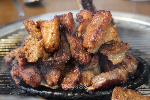 촘촘하게 일자로 돼 있는 극세사 불판에 고기가 닿는 면적이 적어 육질이 부드럽다. 고기가 익으면서 지글지글거리는 소리는 청각을 자극한다.