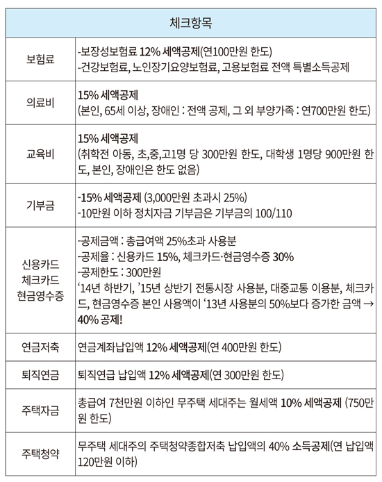 *세법개정에 따라 구체적인 내용이 달라질 수 있음(자세한 내용은 국세청 홈페이지 연말정산 안내 참조)