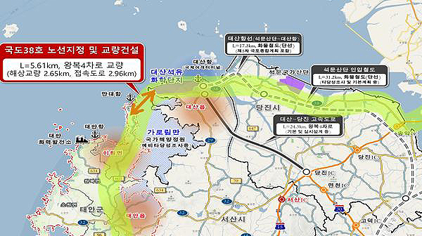 국도38호선(서산 대산~강원 동해) 연장을 통해 만(灣)으로 단절된 구간을 잇자는 것이다.