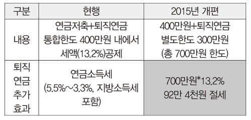 ·퇴직연금이 정부의 활성화 정책 수혜로 세액공제 한도 연간 납입액 700만원으로 확대과세이연 + 연금과세