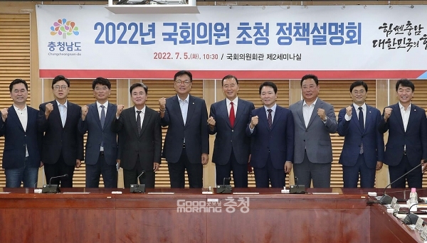 [굿모닝충청 김갑수 기자] 김태흠 충남지사가 5일 오전 국회의원회관에서 취임 후 처음으로 도정 현안 관련 정책설명회를 가진 가운데, 여야 의원들은 민선8기에 대한 기대감을 나타내며 초당적인 협력을 약속했다.