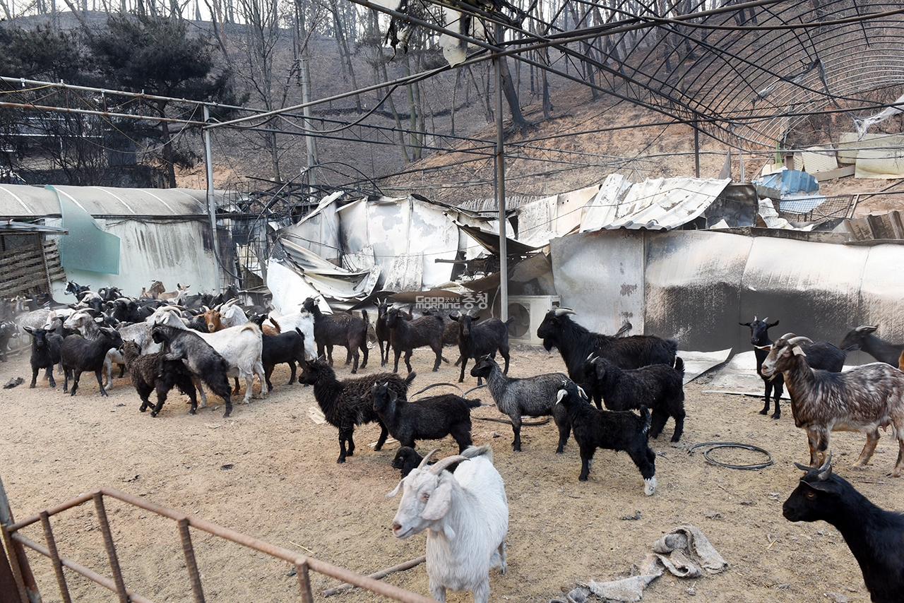 염소 400여마리 가운데 70여마리 염소가 불에 타 죽었지만, 살아남은 염소들 상황도 좋지 않다.