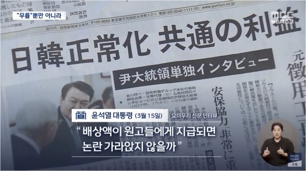 일본에 대한 윤석열 대통령의 발언은 거듭 논란을 자초했다. 문제의 지난 24일 워싱턴포스트와의 인터뷰에서도 “무조건 안된다, 무릎 꿇어라라고 하는 것은 일본이 받아들일 수 없다.”로 해석해야 한다는 국민의힘 주장의 근거는 “이것이 상식적”이기 때문이라는 것이었다. 역으로 말하면 국민의힘 논평에서도 노출됐듯이 윤 대통령의 말이 그만큼 상식적이지 않았다는 의미로도 해석된다.