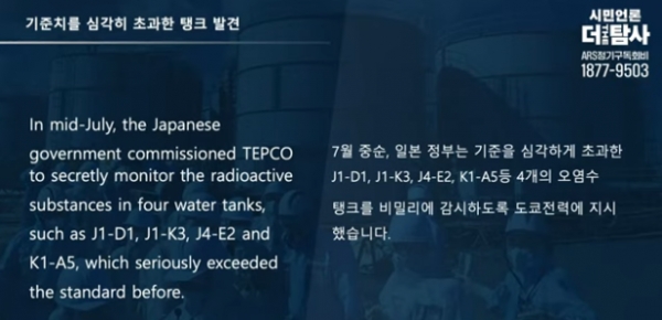 그의 제보에 따르면 후쿠시마 핵오염수를 담은 1,000여 개의 탱크 중 J1-D1, J1-K3, J4-E2, K1-A5 등 4개의 오염수 탱크에 담긴 오염수는 방사능 핵종이 특히 심각하게 많은 양이 검출된 것으로 보인다. 만약 일본이 그동안 우겨온 대로라면 그들의 ALPS 장비로 계속 처리하면 괜찮겠으나 실제로는 비밀리에 이 탱크들을 감시하라고 지시했다고 한다.