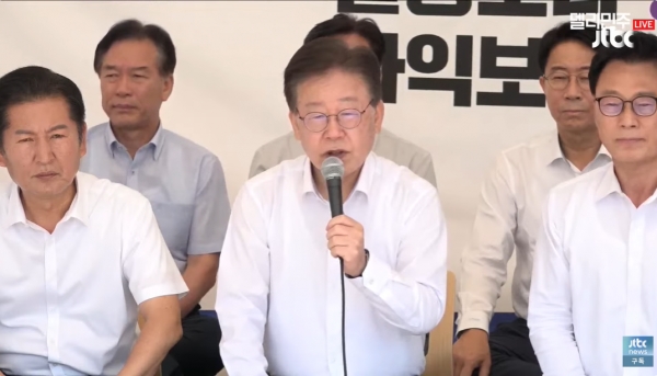 더불어민주당은 이재명 대표의 단식 해제 조건 같은 것은 없으며 윤석열 정부에 대한 투쟁 의지를 담은 것이라고 강조했다. 1일 CBS 라디오 프로그램에 출연한 박성준 대변인은 "검찰 관련 폭압이 이어지고 특히 채수근 상병, 이런 사건을 봤을 때 국정농단이 이어지고 있다"며 "경제, 민생 파탄과 후쿠시마 오염수 관련해서 국가운영 시스템이 붕괴되고 있다"며 "(윤석열 정부에 대한) 결사 항전의 의지를 담아 단식에 돌입한 것"이라고 배경을 설명했다.