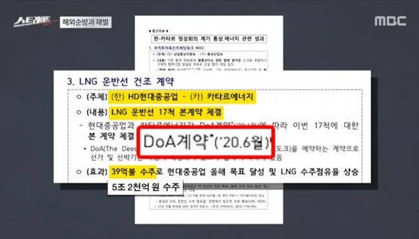 카타르 순방 당시 현대중공업이 카타르에너지와 맺었다는 LNG 운반선 건조계약의 경우 39억 불(한화 5조 2,000억 원) 수주를 했다며 자신들의 치적으로 포장했지만 사전 계약은 이미 문재인 정부 시절인 2020년 6월에 체결된 것으로 밝혀졌다.