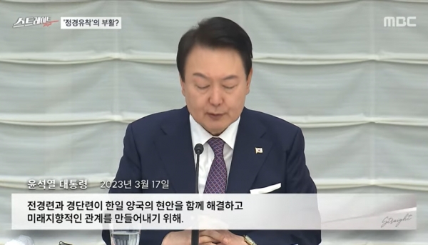 지난 28일 MBC 〈스트레이트〉의 탐사보도 내용은 윤석열 대통령의 실속 없는 해외순방 뿐 아니라 정경유착으로도 이어졌다.