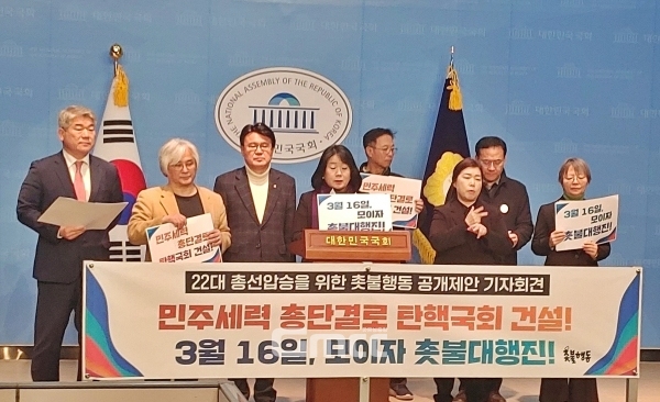 [굿모닝충청 설인호 기자] 촛불행동이 "오는 22대 총선에서 모든 민주·개혁·진보 세력이 모두 결집해 압승을 거두고 윤석열 대통령 탄핵을 실현하자"고 외쳤다.