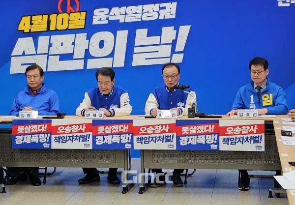 변재일 공동선대위원장도 “총선에서 우리가 패하면 윤 대통령이 국민 신임을 받았다고 생각할 것”이라며 “후보자 모두가 나혼자 당선이 문제가 아니고 내가 떨어지면 대한민국의 정체성이 훼손돼는데 내가 끼어있다고 생각하고 최선을 다해달라”고 당부했다.