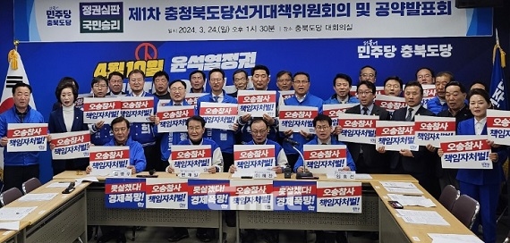 더불어민주당 충북도당이 24일 ’정권심판·국민승리 선거대책위원회를 출범하며 22대 총선에서 도내 전석 석권을 결의했다.