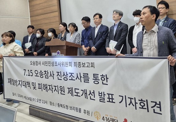 오송참사 시민진상조사위원회는 24일 충북도청에서 기자회견을 열어 ‘진산규명 조사를 통해 확인된 문제점과 주요 조사과제’를 발표했다.