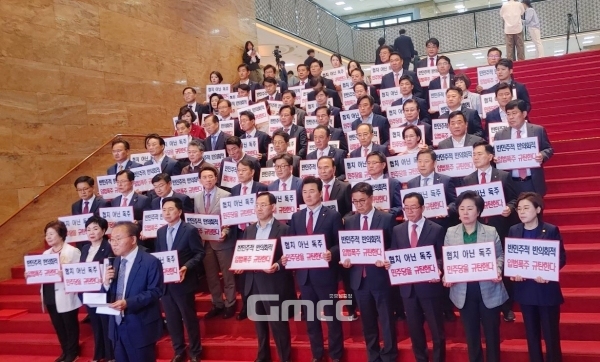 국민의힘은 즉각 의사 일정 거부를 선언하고 윤석열 대통령에 대한 거부권 행사 제안을 시사했다. 본회의장에서 나온 국민의힘은 곧바로 로텐터홀 계단 앞에서 "반민주적 반의회적 입법폭주"라며 규탄 대회를 열었다.