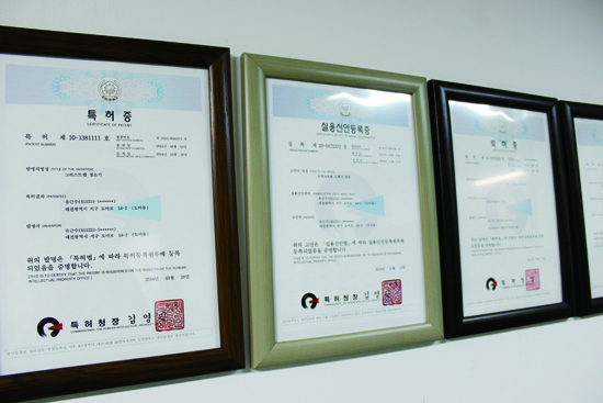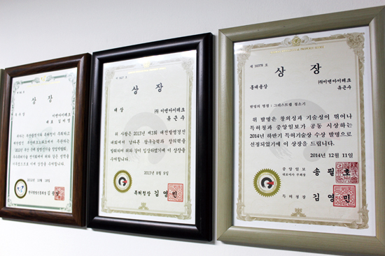 2013년 대전시 주최 대전 발명경진대회 대상을 비롯해, 지난해 12월에는 특허청 우수특허기술상(홍대용상), 특허청 우수발명품 우선 구매 추천, 대전테크노파크 IP스타기업 지정 등 공인된 기술력을 자랑한다.