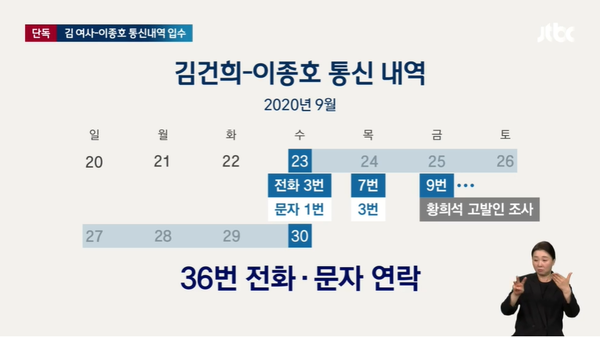 다음 날인 24일에는 전화 7번, 문자는 3번 오갔으며 황 전 국장을 고발인으로 조사한 25일에는 9번이나 통화 했다. 이렇게 두 사람은 9월 23일부터 9월 30일까지 일주일 사이에 36번 전화와 문자로 연락했다. 검찰은 2020년 4월 고발장을 접수하고도 5개월이 지난 9월에서야 고발인 조사를 하며 본격적인 수사에 나섰다.