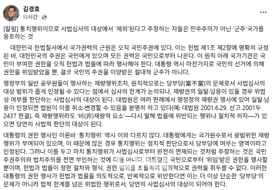 ■내란죄 불성립 의견에…김경호 변호사 "군주 국가 옹호" 일갈
