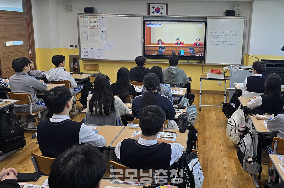 [굿모닝충청 세종=박수빈 기자] 헌법재판소가 윤석열 대통령에 대한 탄핵심판에서 만장일치로 파면 결정을 내린 역사적 순간, 세종 소담고 학생들은 '국민이 주권자'라는 사실을 몸소 깨닫는 기회를 가졌다.