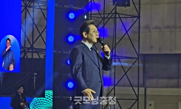 [굿모닝충청 조하준 기자] 27일 오후 3시 경기도 고양시 일산서구 킨텍스에서 열린 더불어민주당 대선 후보 경선에서 최종 후보로 결정된 이재명 후보가 수락연설에서 "반드시 대선에서 승리하고 정권을 탈환하겠다!"는 다짐을 밝혔다. 아울러 선의의 경쟁을 펼쳤던 김경수, 김동연 두 예비후보들에게도 감사의 인사를 보냈다.