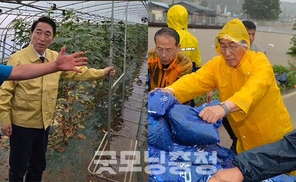 먼저 더불어민주당 박수현 국회의원(공주·부여·청양)은 오전 8시 부여군 규암면 오이, 수박 등 하우스 시설 피해 현장 사진과 함께 “이걸 어찌해야 합니까? 간밤 폭우에 농심이 또 물에 잠겼다”고 걱정했다.