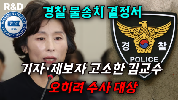 [굿모닝충청 최영규 기자] 한양대학교 김형숙 교수가 자신에 대한 비리 의혹을 보도한 기자들과 내부 제보자를 형사 고소했지만, 경찰은 이를 명예훼손으로 보기 어렵다며 '불송치' 결정을 내렸다.