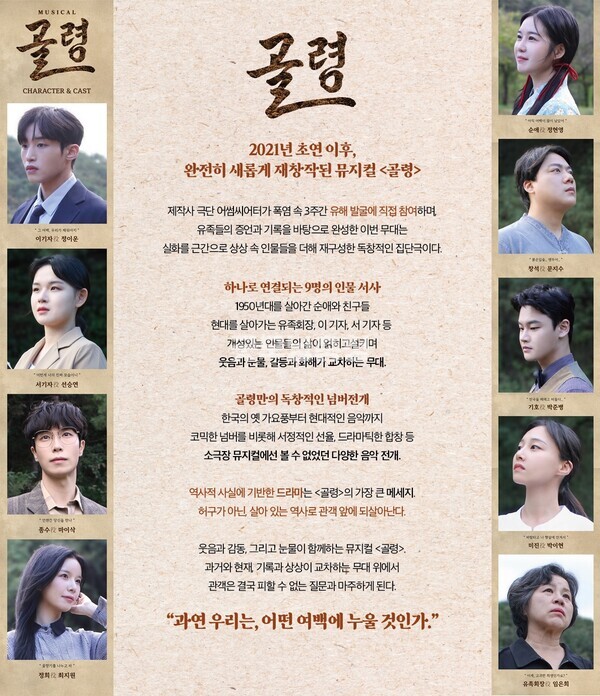 작품은 2021년 초연 이후 완전히 새롭게 재창작되어 돌아온 무대로, 역사적 사실과 드라마적 상상이 교차하는 감동적인 집단극이다.
