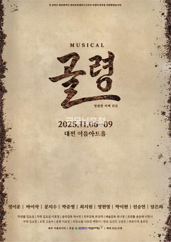 대전 산내 골령골 민간인 학살 사건을 모티브로 제작된 창작 뮤지컬 《골령》이 6일 개막해 9일까지 단 나흘간 대전 이음아트홀에서 공연 된다.
