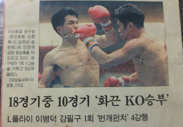권투선수 시절 권구성 대표를 다룬 신문기사.
