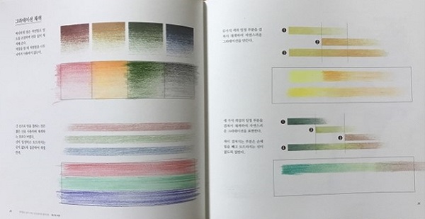 색연필은 서론에 나와 있는 작가의 추천대로 프리즈마 색연필(72색)을 샀다. 인터넷에서 그리 비싸지 않았다. 책의 초반에 그림을 그리는 데에 도움이 되는 기초연습 코너가 있어, 부족한 실력이지만 한번 따라해 보았다.