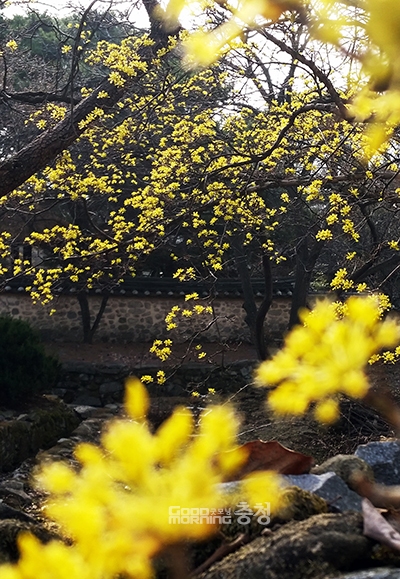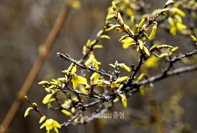 ‘영원불멸의 사랑’이란 꽃말을 가진 노란 산수유도 꽃망울을 터뜨렸다.
