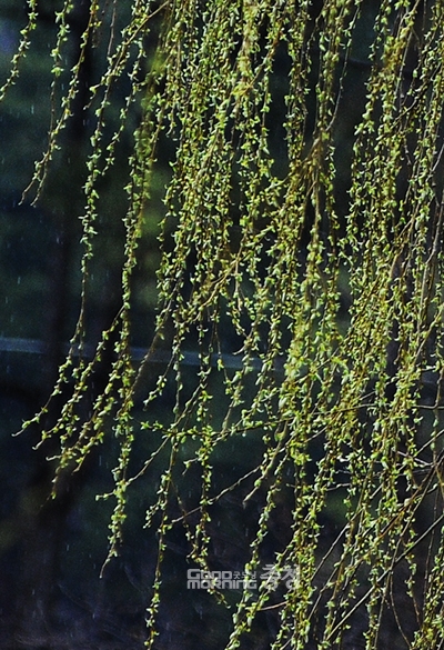 꽃샘추위가 물러나자 천안 삼거리 공원 능수버들 어린 싹들이 봄바람에 춤을 춘다.
