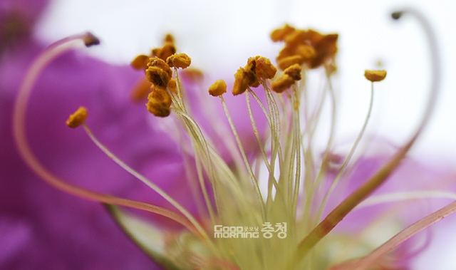 배롱나무 줄기는 달팽이 모양을 하고 꽃술은 서로 포옹하고 있는 듯하다.