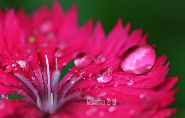 진분홍 패랭이꽃 잎에는 여름을 보내기 아쉬운 듯 물방울이 맺혀 있다.