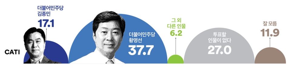 경기 성남시 중원구의 윤영찬 의원 역시 현근택 민주연구원장과의 가상 경선에서 근소한 격차로 밀렸으며 후보 경쟁력에서도 떨어지는 것으로 나타났다. 그리고 최근에 나온 충남 논산시․계룡시․금산군의 김종민 의원의 경우 황명선 전 논산시장과의 가상 경선에서 2배 이상의 격차로 밀리는 것으로 나타났다.