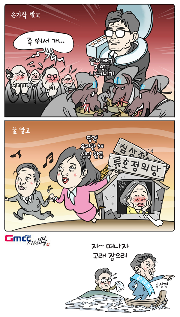 지저분한 장면은 군소 정당에서도 펼쳐진다. 명색이 정의당 비례 1번인 류호정 의원은 당적을 유지한 채 '새로운 선택'이라는 신혼집을 차렸다. 스스로 탈당해 의원직을 상실하느니, 차라리 당의 징계를 받아 쫓겨나는 게 이득이라는 계산이다. 협박인지 엄포인지, 신당을 운운하며 탈당 안 하고 버티는 이낙연 전 대표의 '엄중'은 얼마나 볼썽사나운가. 철면피가 무기가 된 후안무치 정치판, 양고기인지 개고기인지 알게 무어냐. 새벽 시장이 열리면 까막눈들이 우르르 몰려와 기꺼이 지갑을 열 것이니, 자 이제 '개판 오 분 전~!'