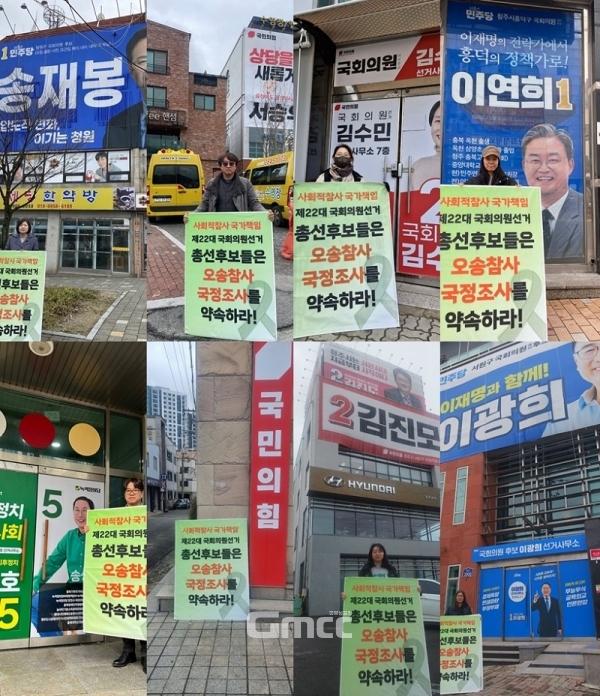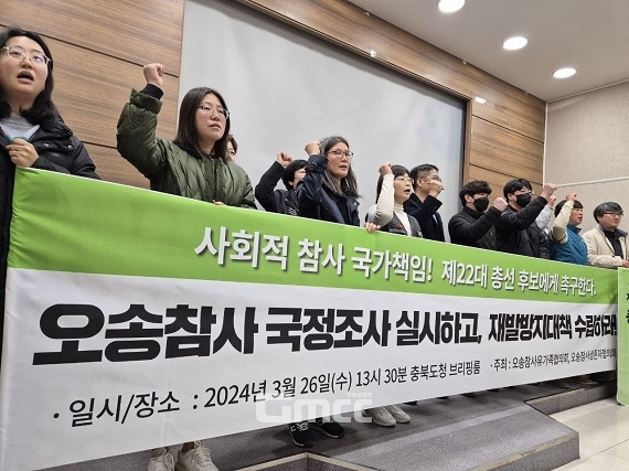 한편 대책위는 기자회견에 앞서 청주권 4개 선거구 주요 후보자들 선거사무소 앞에서 ‘오송참사 국정조사’를 촉구하는 피켓시위를 벌였다.