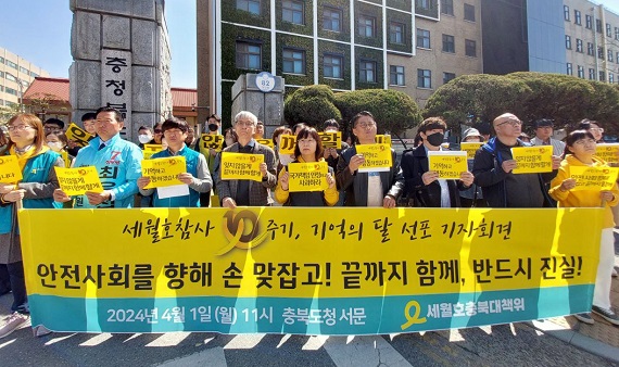 세월호 희생자 추모 및 진실규명 충북범도민대책위원회는 1일 충북도청 서문 앞에서 기자회견을 열고 “304명이 희생된 2014년 4월 16일, 그 날을 잊을 수가 없다”며 “아직 세월호참사의 진실은 온전히 밝혀지지 않았고, 우리는 여전히 진상규명을 요구하고 있다”고 밝혔다.