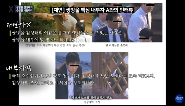 본격적인 영상에 들어가기 앞서 익명의 제보자로부터 김성태가 보석 조건을 수시로 위반한 사실들을 들을 수 있었다. 제보자의 말에 따르면 김성태는 지난 1월 보석으로 출소한 이후 거의 일주일에 한 번 꼴로 회사 임원들을 룸살롱 등 특정한 장소로 불러 모아 폭력을 행사했고 지금도 현재 진행형이라 한다.