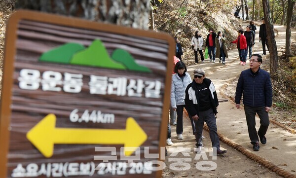 구는 성동산 등산로 1km 구간 중 400m에 흙길과 보행매트를 설치해 사계절 맨발로 걸을 수 있는 산책로를 조성했다. 주민 의견을 반영해 만든 참여형 사업이라는 점에서 의미가 크다는 설명이다.